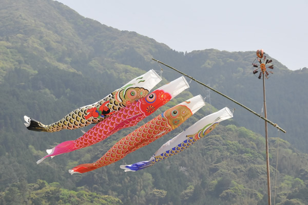 黄砂の中を元気よく泳ぐ鯉のぼり。