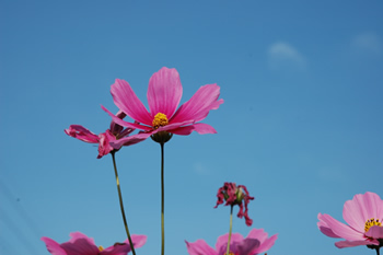 もう枯れる直前でしたが、コスモスの花が咲いていました。寒くなっ
