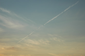 綺麗な飛行機雲が広がってました。